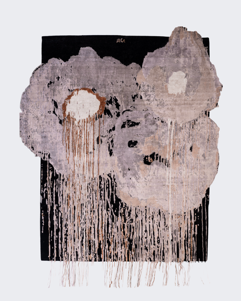 Crafted in editions of nine, the rugs evoke shifting landscapes and liquid forms, inviting interaction while maintaining a quiet, poetic presence. New Life reflects Denino’s ongoing exploration of identity and impermanence, merging hand-made tradition with contemporary artistic vision.